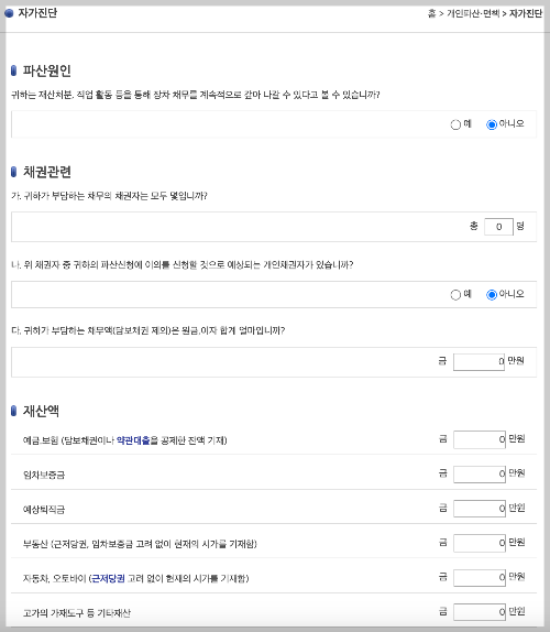 개인파산면책>자가진단 [대한법률구조공단 개인회생 및 파산지원센터]