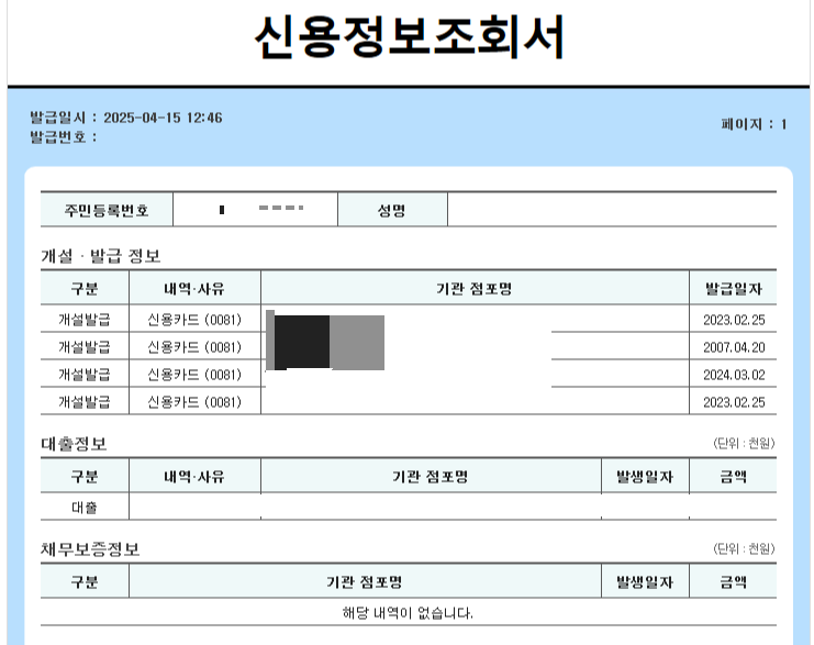 신용정보조회서 해석 – 이건 알고 봐야 한다! (출력순서기준)