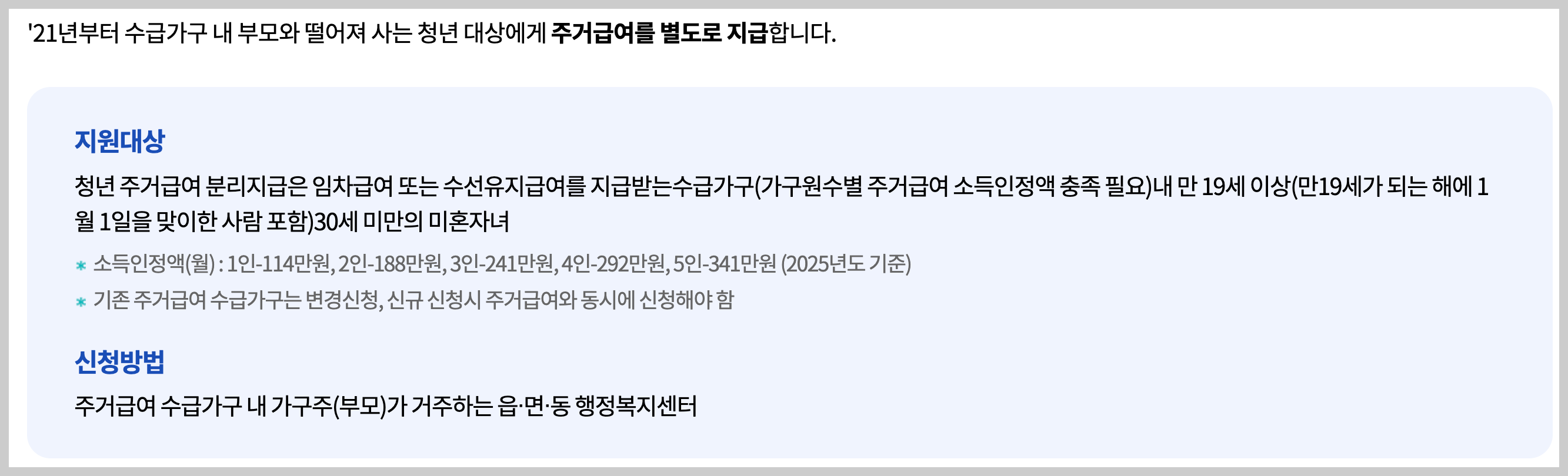 - 숨겨진 혜택 3: 청년 주거급여 분리지급