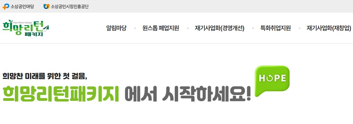 🔍 희망리턴패키지 공식 홈페이지 https://www.sbiz.or.kr/nhrp/main.do